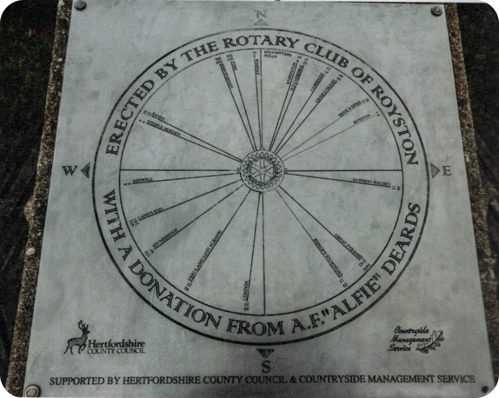 anonymously) and some of the money he gave was used to construct the compass point on Therfield Heath, overlooking the