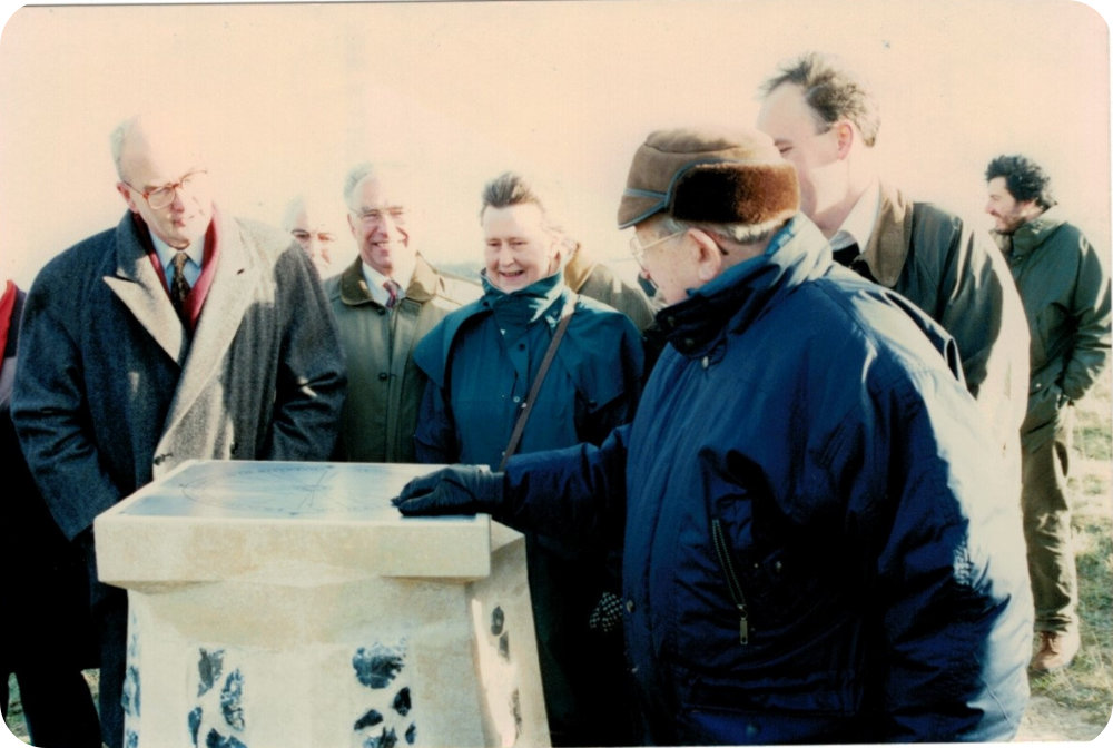 A local architectural stonemason and carver, Mark Raymen, was commissioned to build this toposcope in November 1996 by the